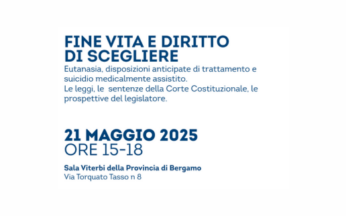 Il 21 maggio 2025, dalle 15:00 alle 18:00, presso la Sala Viterbi del Palazzo della Provincia di Bergamo (via Torquato Tasso 8), si terrà il convegno “Fine vita e diritto di scegliere”, dedicato a... Leggi tutto