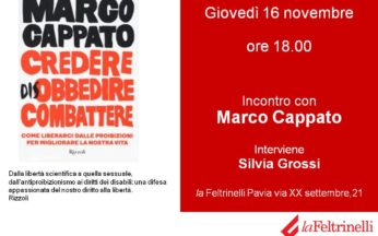 Marco Cappato, tesoriere dell’Associazione Luca Coscioni, presenterà a Pavia il suo libro Credere disobbedire combattere. Come liberarci dalle proibizioni per migliorare la nostra vita, edito da ...