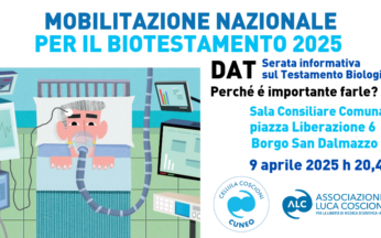 Nell’ambito della mobilitazione nazionale per il testamento biologico 2025, la Cellula Coscioni di Cuneo e l’ Associazione per la Lotta all’Ictus Cerebrale A.L.I.C, con il Patrocinio ... Leggi tutto