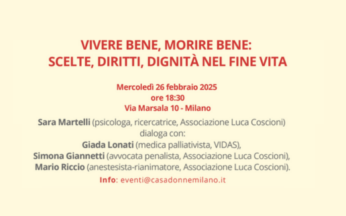 Alla Casa delle donne di Milano l’evento “Vivere bene, morire bene: scelte, diritti, dignità nel fine vita”. Per l’Associazione Luca Coscioni interverranno Simona Giannetti,... Leggi tutto