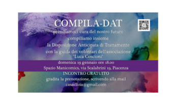 Casa Clizia APS organizza l’evento COMPILA-DAT, all’interno del quale si aiuteranno le persone presenti a compilare la propria Disposizione Anticipata di Trattamento. Il percorso di... Leggi tutto