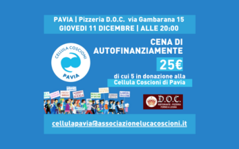 Cena di autofinanziamento della Cellula Coscioni di Pavia 📍 Pizzeria D.O.C., Via Gambarana 15 – Pavia 🗓️ Giovedì 11 dicembre 2025 🕗 Ore 20:00 La Cellula Coscioni di Pavia organizza una cena di... Leggi tutto