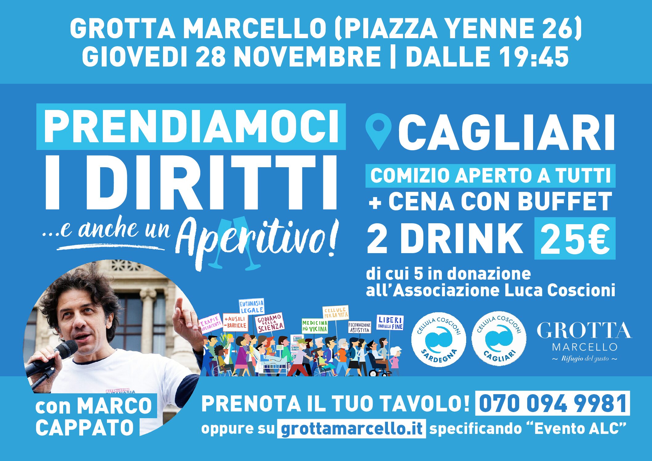 La Cellula Coscioni Sardegna e La Cellula Coscioni Cagliari organizzano un’apericena con Marco Cappato, Tesoriere dell’Associazione Luca Coscioni per la libertà di ricerca scientifica APS. ... Leggi tutto