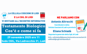 Testamento Biologico: Cos’è e come si fa – Incontro informativo a Lodi 📍 Sede CGIL – Via Lodivecchio 31, Lodi 🗓️ Sabato 29 novembre 2025 🕚 Ore 11:00 La Cellula Coscioni di Lodi e la CGIL di Lodi... Leggi tutto