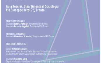 L’ Ordine degli avvocati di Trento, insieme all’Università degli Studi di Trento, al Comitato Pari Opportunità di Trento e al Centro Studi Interdisciplinare di Genere di Trento, organizza... Leggi tutto