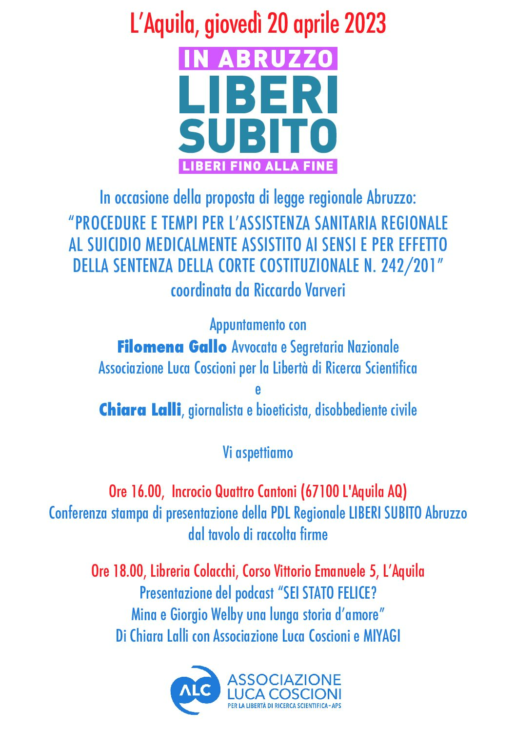 Alessandro Gerardi, Consigliere Generale di Associazione Luca Coscioni, parteciperà al convegno organizzato da Arcobaleno APS Disabilità a 360 gradi l’appuntamento è per lunedì 17 aprile alle... Leggi tutto