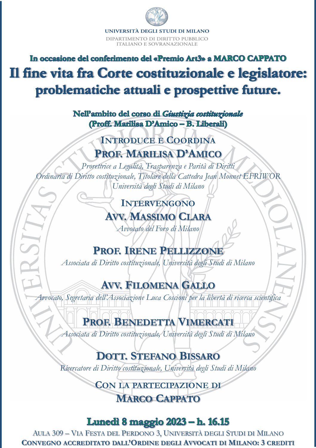 In occasione del conferimento del Premio Art. 3 a Marco Cappato, tesoriere dell’Associazione Luca Coscioni per la libertà di ricerca scientifica, l’Università degli Studi di Milano... Leggi tutto