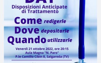 è in programma in provincia di Treviso il convegno Disposizioni anticipate di trattamento – Come redigerle, dove depositarle e quando utilizzarle. L’appuntamento è per venerdì 21 ottobre... Leggi tutto
