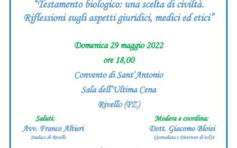 La Cellula Coscioni della Basilicata, in collaborazione con la Biblioteca Rivellese, organizza l’incontro Testamento biologico: una scelta di civiltà. Riflessioni sugli aspetti giuridici, medici ... Leggi tutto