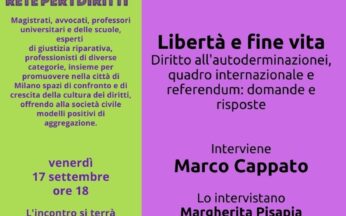 Il tesoriere dell’Associazione Luca Coscioni, Marco Cappato, è ospite a Milano della Rete dei Diritti, dove parlerà di Fine vita e del Referendum Eutanasia Legale. L’appuntamento è per 17... Leggi tutto