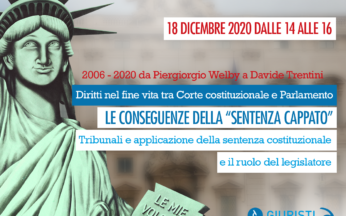 VAI ALL’INCONTRO SUCCESSIVO → L’Associazione Luca Coscioni ha organizzato per venerdì 18 dicembre 2020, dalle 14:00 alle 16:00, il webinar: Le conseguenze della sentenza Cappato Tribunali e... Leggi tutto