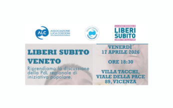 La Cellula Coscioni Vicenza-Padova organizza l’incontro “Liberi subito Veneto” 📍 Villa Tacchi, viale della Pace 89, Vicenza📅 Venerdì 17 aprile 2026🕡 Ore 18:30 Nella corniche della mobilitazione... Leggi tutto