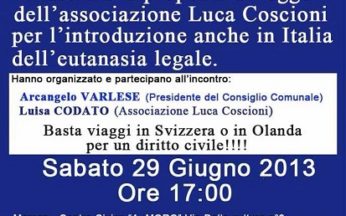 L’evento si terrà sabato 29 giugno 2013 dalle ore 17.00 presso il Centro Civico A. Moro in Via della Cultura 3. Mina Welby illustrerà la proposta di legge per l’introduzione anche in... Leggi tutto