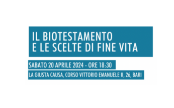 La Cellula Coscioni Bari organizza un evento informativo sulle DAT in occasione della mobilitazione nazionale. L’appuntamento è per Sabato 20 aprile alle ore 18.30 in Corso Vittorio Emanuele II... Leggi tutto