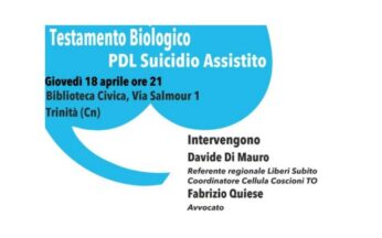 La Cellula di Torino e la Cellula di Cuneo collaborano insieme per un evento DAT in occasione della mobilitazione nazionale biotestamento. L’evento si terrà giovedì 18 aprile a Trinità(CN)... Leggi tutto