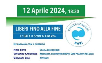La Cellula Coscioni di Bari organizza un evento informativo DAT in occasione della mobilitazione nazionale DAT. L’appuntamento è per venerdì 12 aprile alle ore 18.30 in Via Tasso c/o, presso la... Leggi tutto