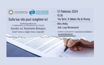 Dare Protezione Roma e Associazione Luca Coscioni organizzano un incontro informativo sul testamento biologico dal titolo Testamento biologico: cos’ è? Come si redige? Dove si deposita?... Leggi tutto
