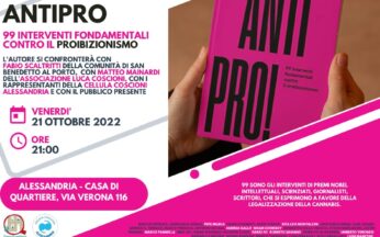 Si terrà Ad Alessandria la presentazione del libro Antipro – 99 interventi fondamentali contro il proibizionismo L’appuntamento è per venerdì 21 ottobre alle ore 21.00 presso la Casa di... Leggi tuttoA Firenze la presentazione di un volume sulle potenzialità mediche degli psichedelici