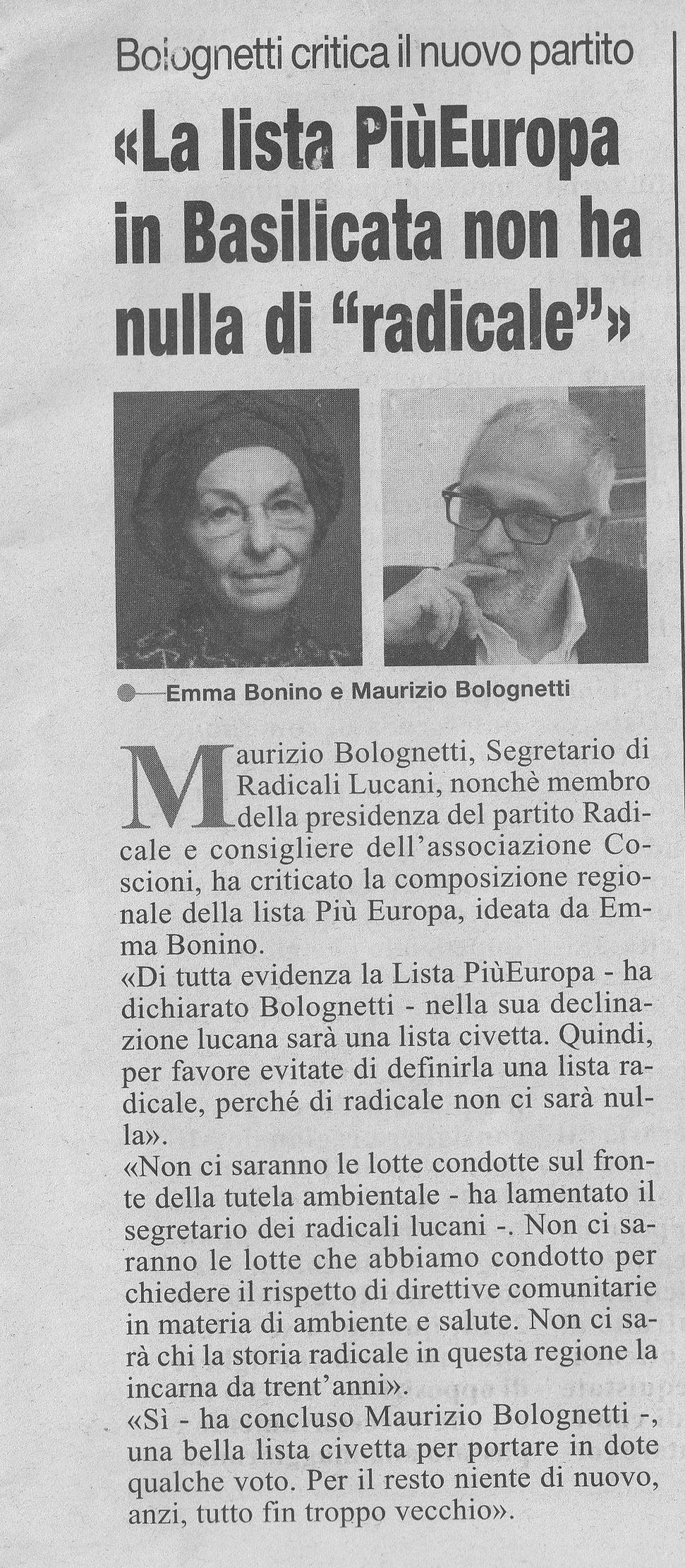 Maurizio Bolognetti, giornalista, collaboratore di Radio Radicale, per la quale ha tra l’altro realizzato numerosi reportage su vicende di inquinamento ambientale, autore dei libri “Buchi per terra ovvero cinquanta sfumature di greggio”, “Le mani nel petrolio ovvero da Zanardelli a Papaleo passando per Sanremo e Tempa Rossa” e “La peste Italiana. Il Caso Basilicata”. Bolognetti ha collaborato con “Agenda Coscioni” e il settimanale “Il Resto”. Ha costituito nel 2004 l’Associazione Radicali Lucani di cui è Segretario.