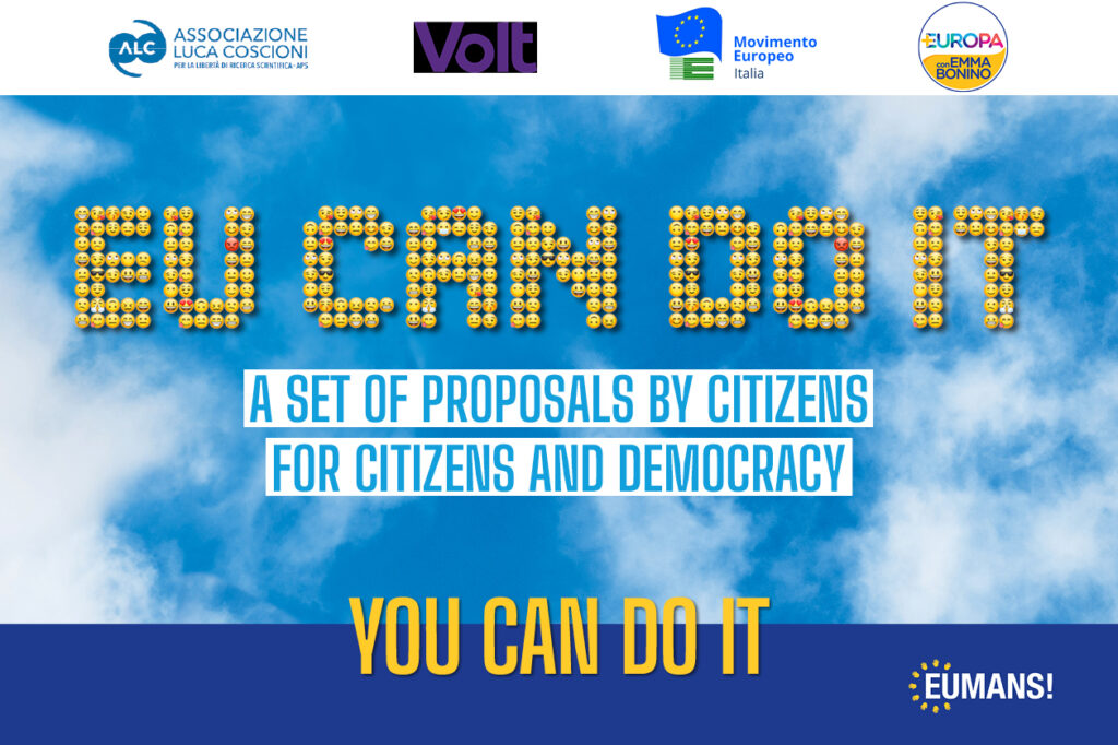 Ecco perché abbiamo aderito al pacchetto di petizioni Eu can do it, you can do it, lanciato dal movimento paneuropeo di iniziativa popolare Eumans e rivolto al Parlamento europeo.