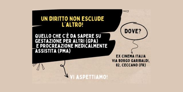 Si terrà in provincia di Frosinone l’iniziativa Un diritto non esclude l’altro! Quello che c’è da sapere su Gestazione Per Altri e Procreazione Medicalmente Assistita. Interverrà Maria Sole Giardini, coordinatrice della Cellula Coscioni Terni e autrice del libro Roki-storia di una battaglia.