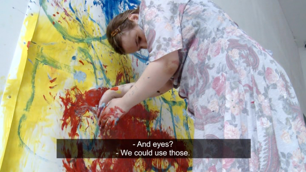 En eye for an eye: il film presenta persone con parti del corpo amputate in compagnia di una persona in salute. Il corpo prestante entra in un ambiente intimo, una situazione con portatori di handicap, in qualche modo prestando loro gli arti mancanti. I risultati sono creature ibride – esseri con un numero dispari di arti. “I disabili e normodotati cooperano facilmente in questa simbiosi, creando un insolito doppio essere umano. Eppure entrambe le parti pagano in fatica, in dolore fisico, la presenza invadente dell’altro, la violazione della loro privacy”.