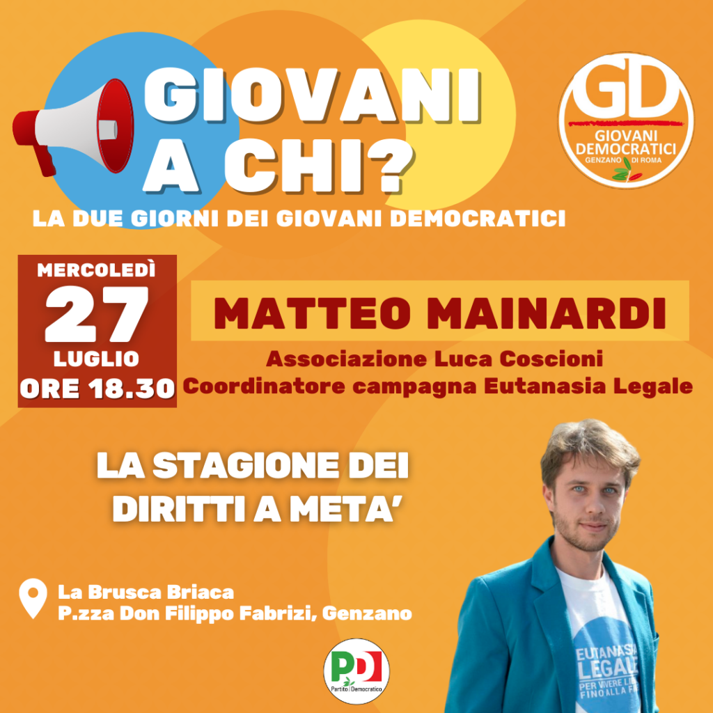 Alla festa dei GD Genzano si terrà un dibattito dal titolo La stagione dei diritti a metà.