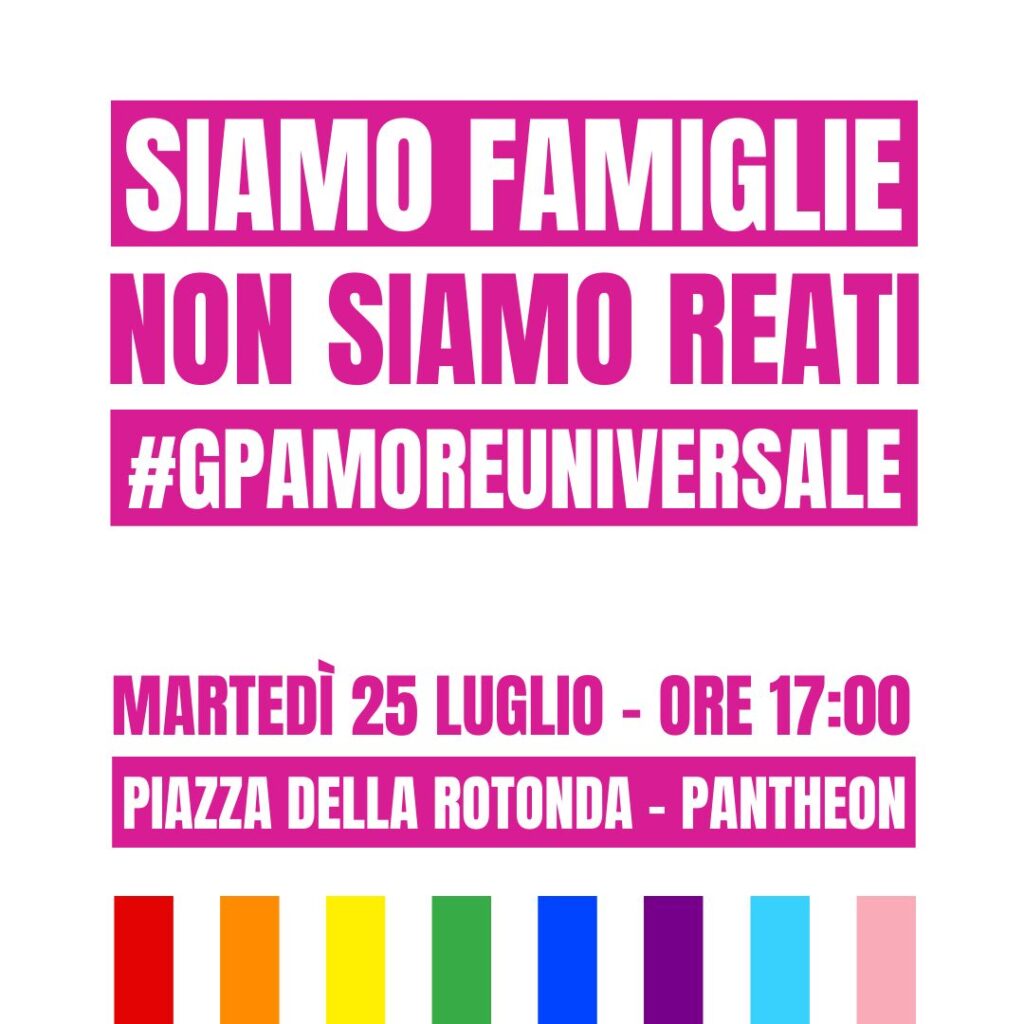 A Roma la manifestazione “Siamo famiglie non siamo reati – #GPAMOREUNIVERSALE” indetta dall’Associazione Famiglie Arcobaleno