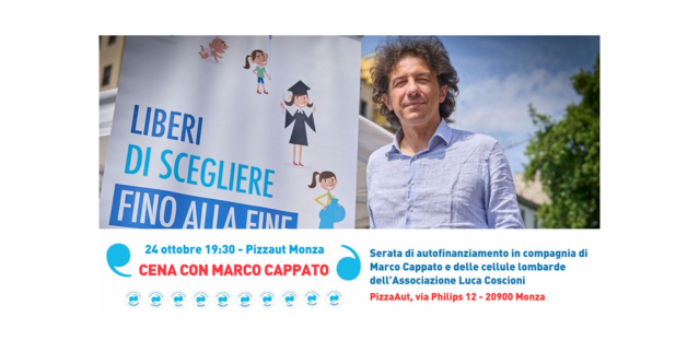 Venerdì 24 ottobre Marco Cappato parteciperà alla cena di raccolta fondi organizzata nel locale PizzAut di Monza, e con lui ci saranno le cellule lombarde dell’Associazione Luca Coscioni, in una serata all’insegna dei diritti e delle libertà.