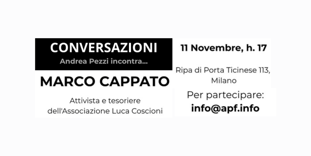 Marco Cappato, tesoriere dell’Associazione Luca Coscioni, sarà ospite del nuovo appuntamento del ciclo “Conversazioni”, condotto da Andrea Pezzi.