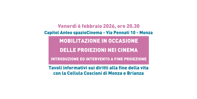 In occasione della proiezione del film La Grazia di Paolo Sorrentino, la Cellula Coscioni di Monza introdurrà lo spettacolo per poi dare spazio, al termine della visione, a un dibattito in sala. Sarà inoltre allestito un tavolo informativo dove sarà possibile ricevere materiale di approfondimento sui diritti riguardanti il fine vita. Un’occasione di sensibilizzazione per riflettere insieme sui temi centrali della libertà e dell’autodeterminazione.