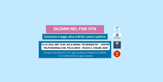 Francesco di Paola membro di Giunta di Associazione Luca Coscioni per la libertà di ricerca scientifica APS e Nino Sisto, coordinatore della Cellula Coscioni Bari, parteciperanno al convegno “Dilemmi nel fine vita. Coscienza e legge, etica e diritto, uomo e politica”, sarà un’occasione di confronto promossa in ambito universitario e professionale sui temi dell’autodeterminazione, della bioetica e delle scelte di fine vita.