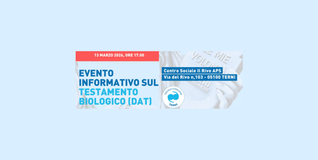 La Cellula Coscioni di Terni promuove un incontro pubblico dedicato al testamento biologico, per informare cittadine e cittadini sulle Disposizioni Anticipate di Trattamento (DAT) e sugli strumenti oggi disponibili per esercitare il diritto all’autodeterminazione nelle scelte di fine vita.