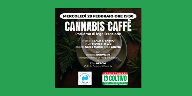 La Cellula Coscioni di Brescia organizza un incontro per parlare di legalizzazione ed invitare a firmare la PDL Io Coltivo, con Elisa Peroni, coordinatrice della Cellula Coscioni di Brescia, e Barbara Bonvicini, vicepresidente di Meglio Legale.