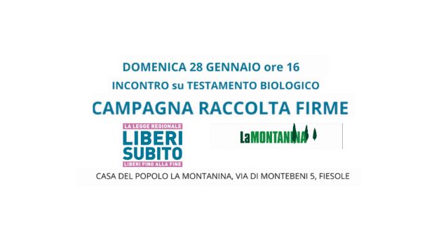 Si terrà a Fiesole un incontro sul fine vita e i diritti a esso collegati con Matteo Mainardi, coordinatore della Campagna Nazionale Liberi Subito e membro di Giunta, e Felicetta Maltese, coordinatrice della PDL Liberi Subito Toscana e disobbediente.