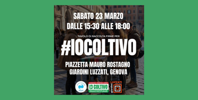 La Cellula Coscioni di Genova organizza un tavolo di raccolta firme sulla proposta di legge Io Coltivo!
