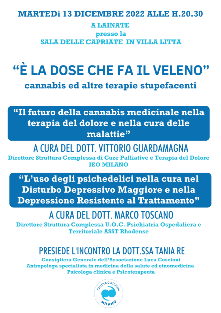 La Cellula Coscioni Milano, in collaborazione con gli attivisti Claudio Stellari e Tatiana Zampollo, organizza un incontro su Cannabis e altre terapie stupefacenti.