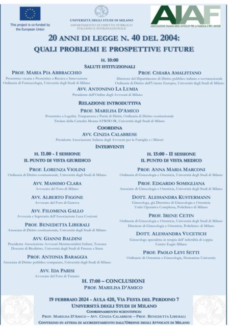 Si terrà all’Università degli Studi di Milano il Convegno 20 anni di legge 40/2004: quali problemi e prospettive future.