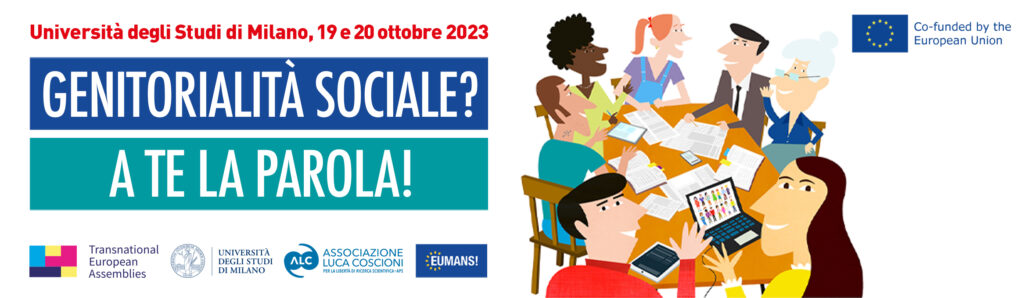 Il 19 e il 20 ottobre 2023, presso l’Università degli Studi di Milano (“La Statale”), si svolgerà la prima Assemblea civica estratta a sorte sulla genitorialità sociale, finanziata dall’Unione europea e patrocinata dall’Università degli Studi di Milano.