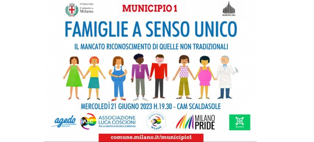 Al Cam Scaldasole di Milano si terrà un’iniziativa sull’omogenitorialità dal titolo Famiglie a senso unico.