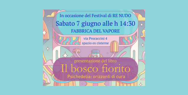 In occasione del Festival di Re Nudo, sabato 7 giugno 2025 alle ore 14:30, presso lo spazio ex cisterne della Fabbrica del Vapore (via Procaccini 4, Milano), si terrà la presentazione del libro curato da Letizia Renzini dedicato al cosiddetto rinascimento psichedelico.