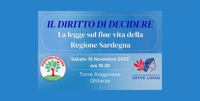In occasione dell’incontro pubblico “Il diritto di decidere – La legge sul fine vita della Regione Sardegna”, l’avvocato Aldo Luchi, membro della Cellula Coscioni Cagliari, parteciperà al confronto promosso da Sinistra Futura e dalla Scuola di cultura politica Joyce Lussu.