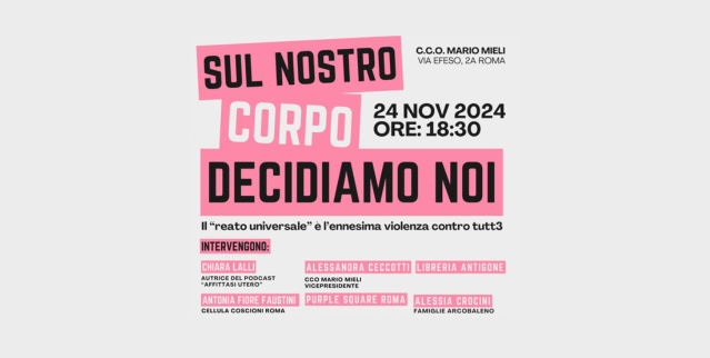 L’appuntamento è per domenica 24 novembre alle ore 18.30 presso il Circolo Mario Mieli, in Via Efeso 2A, a Roma.