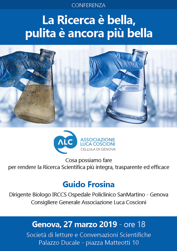 L’incontro è volto ad indagare su cosa è possibile fare per rendere la ricerca scientifica più integra, trasparente ed efficiente. Interverrà alla conferenza Guido Frosina, consigliere generale dell’Associazione Luca Coscioni e Dirigente biologo presso l’IRCCS Ospedale Policlinico San Martino di Genova.