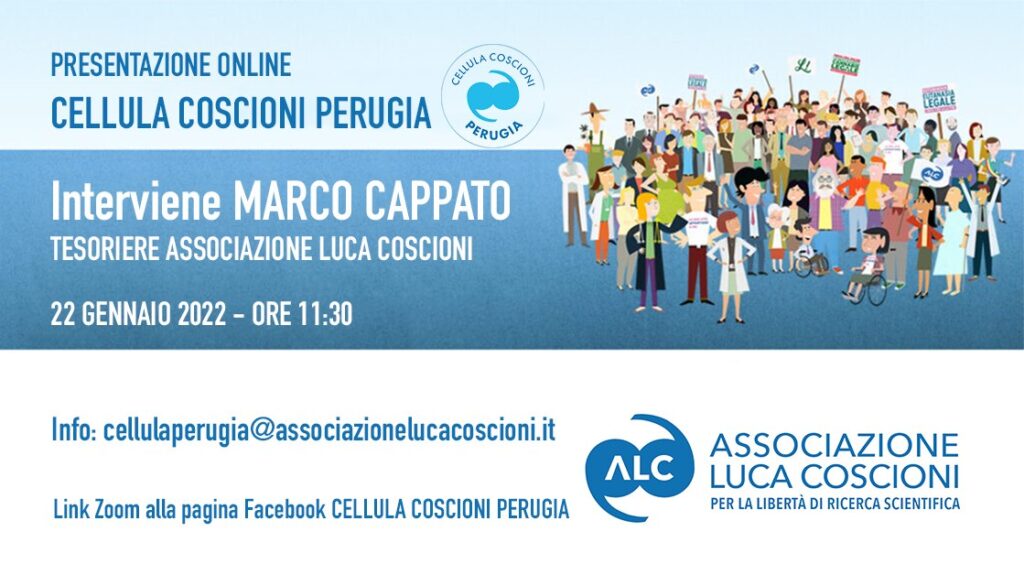 Sabato 22 gennaio 2022, dalle ore 11:30 alle 12:30, si costituisce la Cellula Coscioni di Perugia.