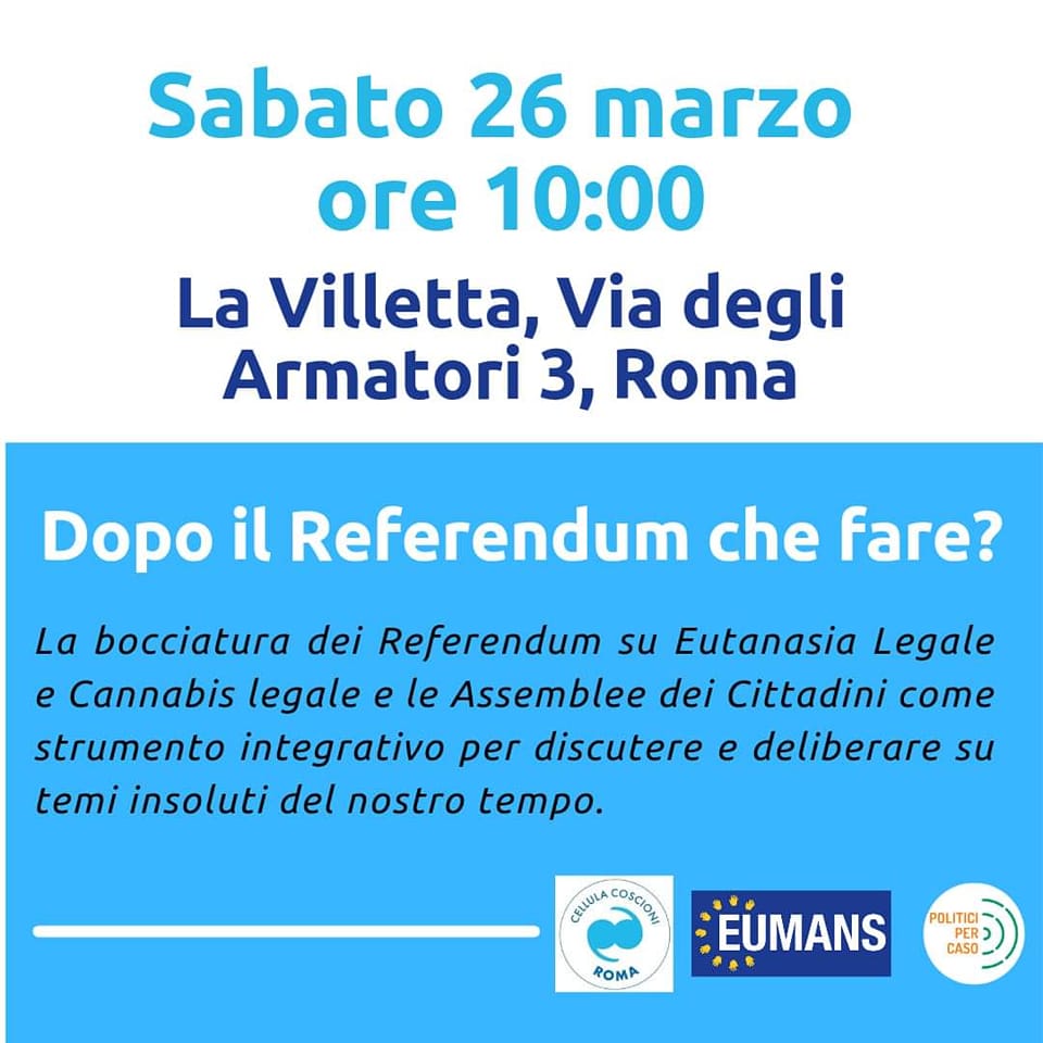 La Cellula Coscioni di Roma, in collaborazione con Eumans e Politici per Caso, organizza il dibattito Dopo i referendum che fare?