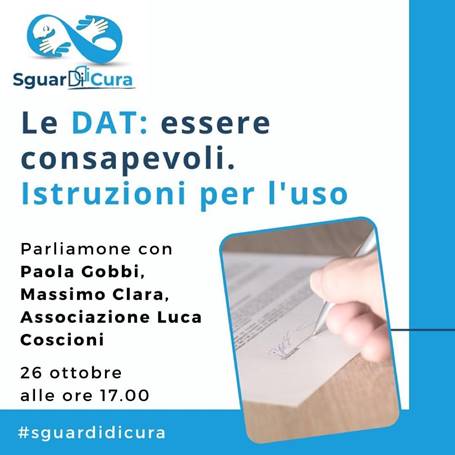 A cura di Sguardi di Cura e della Cellula Coscioni Milano, si terrà un evento online dal titolo Le Dat: essere consapevoli. Istruzioni per l’uso.