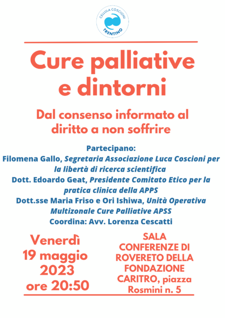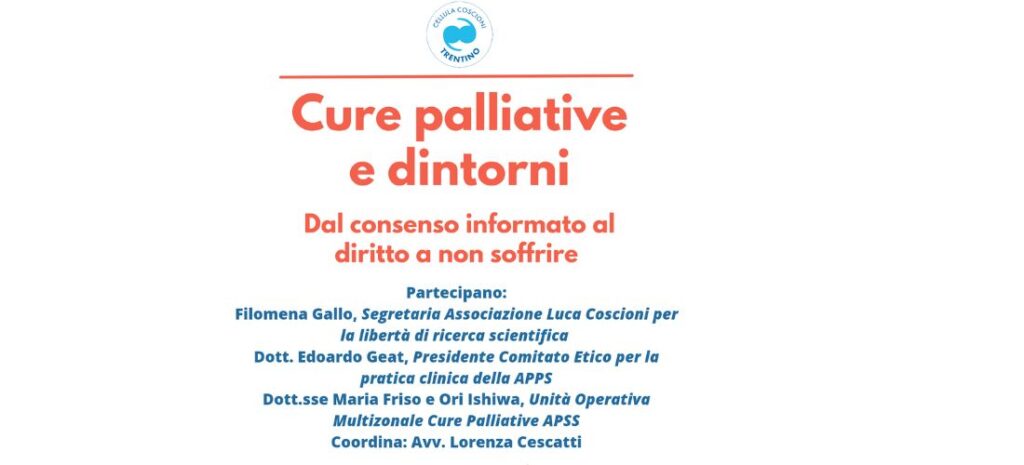 Filomena Gallo, Segretaria Nazionale di Associazione Luca Coscioni, sarà a Rovereto per il convegno Cure palliative e dintorni – dal consenso informato al diritto a non soffrire, organizzato dalla Cellula Coscioni Trentino.