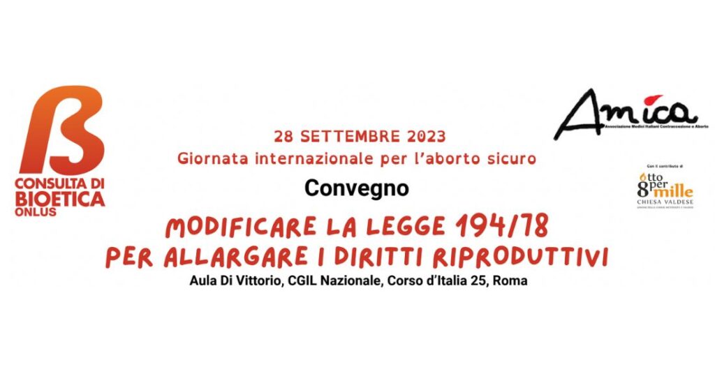 In occasione della Giornata internazionale per l’aborto sicuro, Anna Pompili, membro di Giunta ALC e ginecologa, e Chiara Lalli, autrice di Mai Dati.Dati aperti (sulla legge 194) – perchè sono nostri e perchè ci servono per scegliere, partecipano al convegno Modificare la legge 194/78 per allargare i diritti riproduttivi, organizzato da Consulta di Bioetica Onlus e l’Associazione Medici Italiani Contraccezione Aborto, con il contributo di Chiesa Valdese.