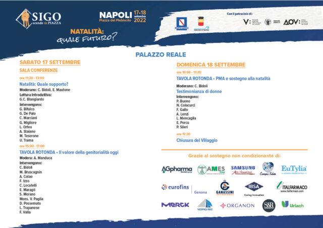 L’appuntamento è per domenica 18 settembre dalle ore 10:00 alle ore 11:30, alla Tavola Rotonda PMA e sostegno alla natalità, presso Piazza del Plebiscito a Napoli.